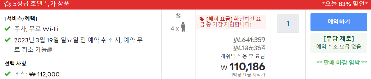 백번 활용한 듯하다.이런식으로 무료 취소 기한 안내해줌