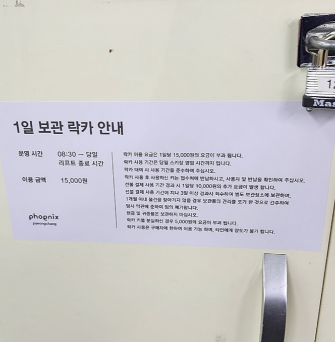 스키까지 할수 있는 락카는 하루 1만원에서 1만5천원 정도 한다.